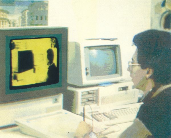 La scheda del CUBICOMP aveva uno switch comandabile da programma, quindi avevamo attaccato la camera passo passo, lanciavamo il render, la camera inquadrava il monitor, e quando il render era finito scattava un fotogramma. Tenendo conto che veniva renderizzato un fotogramma ogni ora, era necessaria una settimana intera per fare una sigla.